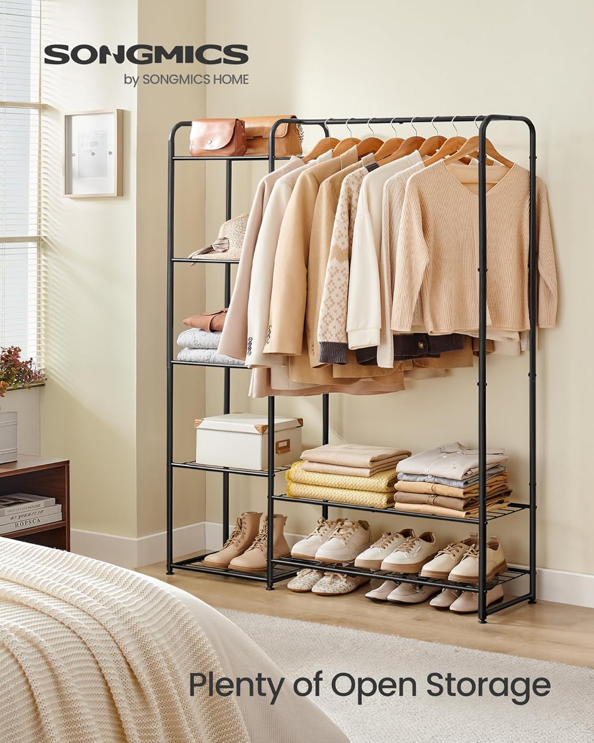SONGMICS Wardrobe Closet, 44.1 Inch Large Portable Closet, Clothes Rack for Hanging Clothes,Heavy Duty Garment Rack, Storage Organizer with Shelves, 44.1 x 11.4 x 62.4 Inches, Black ULGR462B01